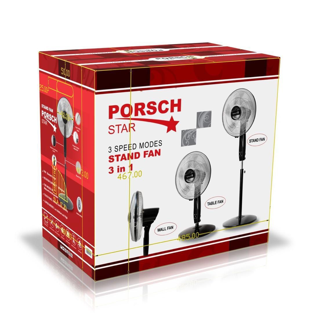 پنکه دیجیتال سه منظوره پورش استار کنترل دار ( ریموت ) پنل لمسی مشکی پایه کفی فلزی ( سرب دار سنگین ) سه منظوره : ایستاده ، رومیزی و دیواری شرکتی ( ضمانت نامه رسمی )